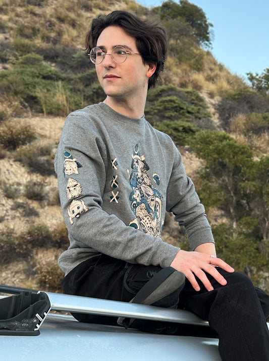 "NO EVIL HERE (Gray & Blue Skulls)" Crew Neck Sweatshirt